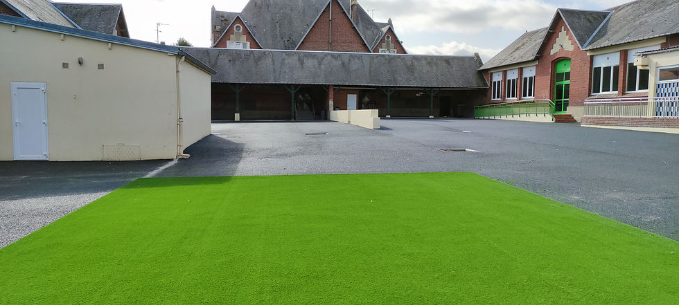 Aménagement de la cour d'école :- Enrobé drainant- Aire de jeux en gazon synthétique
