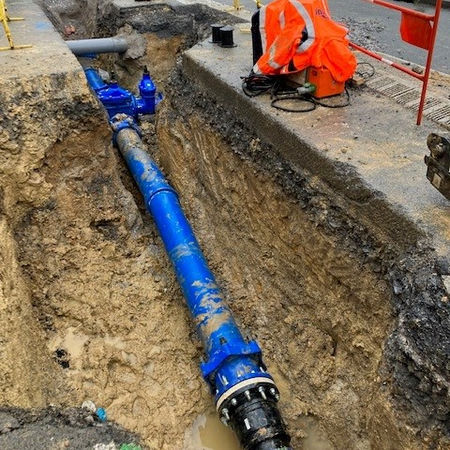 Description des travaux : Renouvellement de canalisations eau potable en fonte DN250 100ml, DN200 1 820ml et 60 branchements.